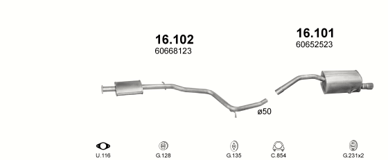 Auspuffanlage für ALFA ROMEO 147 1.9 D (1.9 JTD Turbo Diesel) |