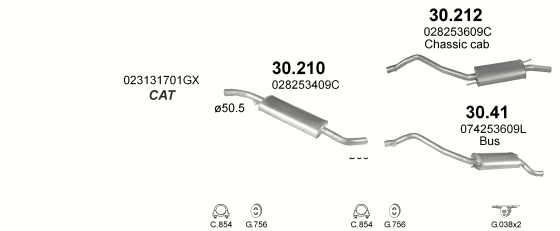 Auspuffanlage für VOLKSWAGEN TRANSPORTER IV 2.0 (2.0 SWB 2920mm/LWB 3320mm) |